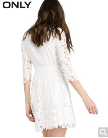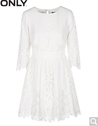 • 商品名称:ONLY春季新品纯棉修身高腰镂空蕾丝连衣裙女L|116307501 021奶白 155/76A/XS